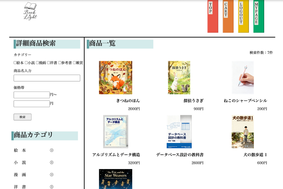 ・本と雑貨のECサイト【職業訓練校のグループ制作課題(製作期間約1か月・4人グループ)】